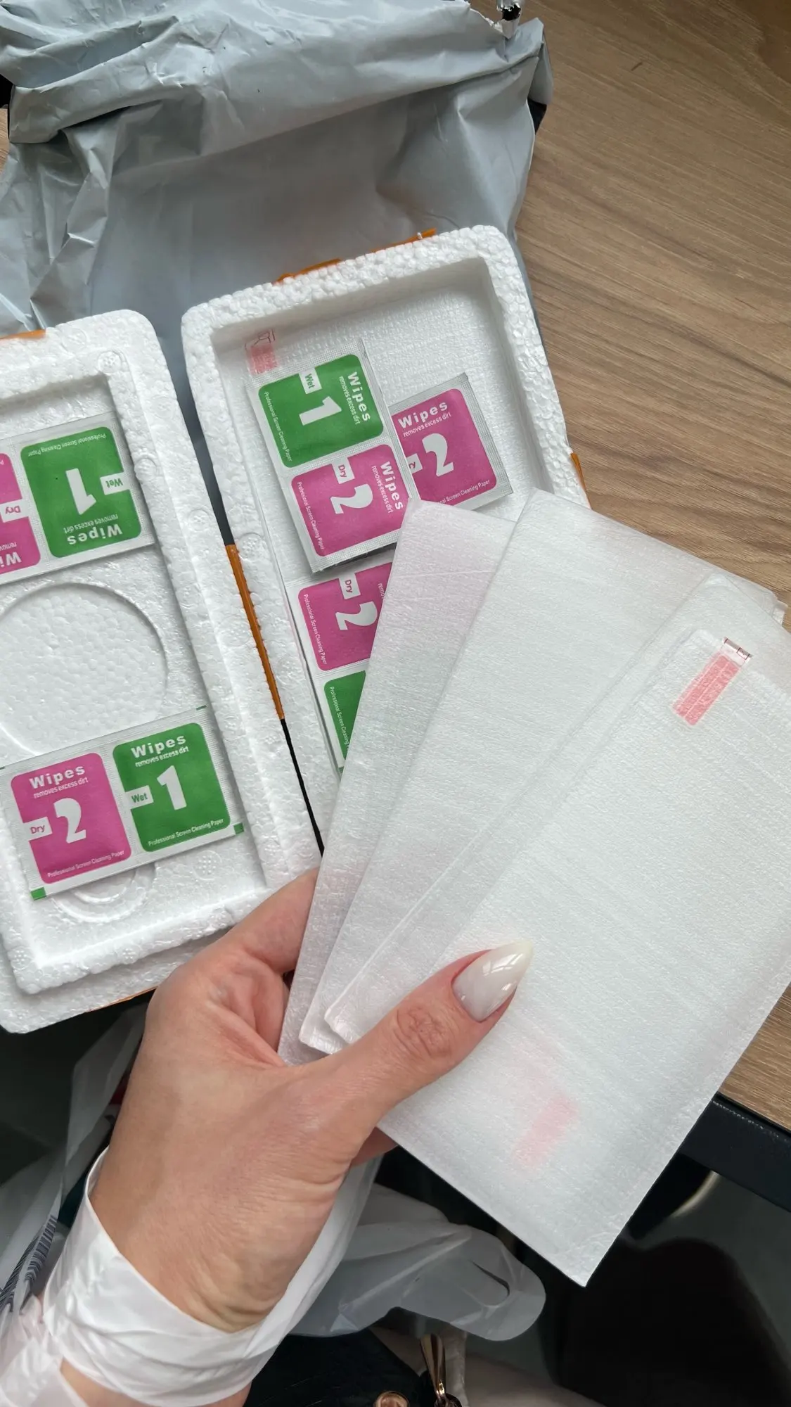 The glasses are well secured in a thicker styrofoam box and individually in sleeves made of thick and soft material, it covers almost the whole phone screen, the quality is quite good.