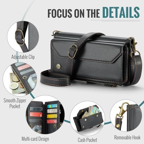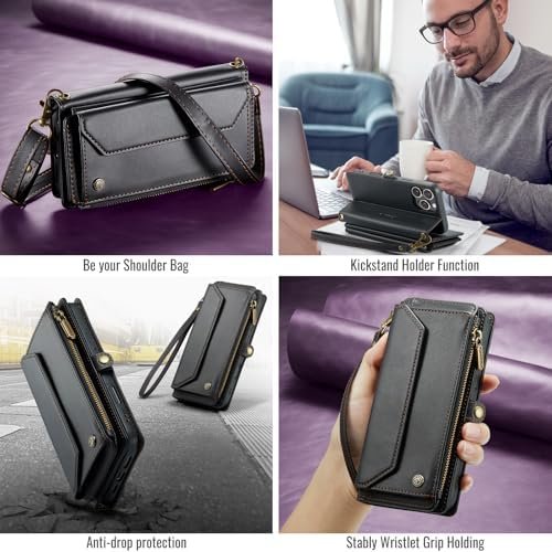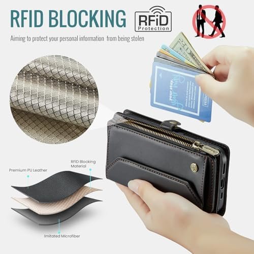 【Kortfack, dragkedja och handledsrem】Detta plånboksfodral har 10 kortfack + 1 ficka med dragkedja + 1 kontantfack + 1 kontantficka. Förvara ditt ID, kreditkort, körkort, sedlar, mynt och lite kontanter utan problem. Dragkedjan har testats mer än 5000 gånger; med en avtagbar rem som ger ett valfritt grepp.