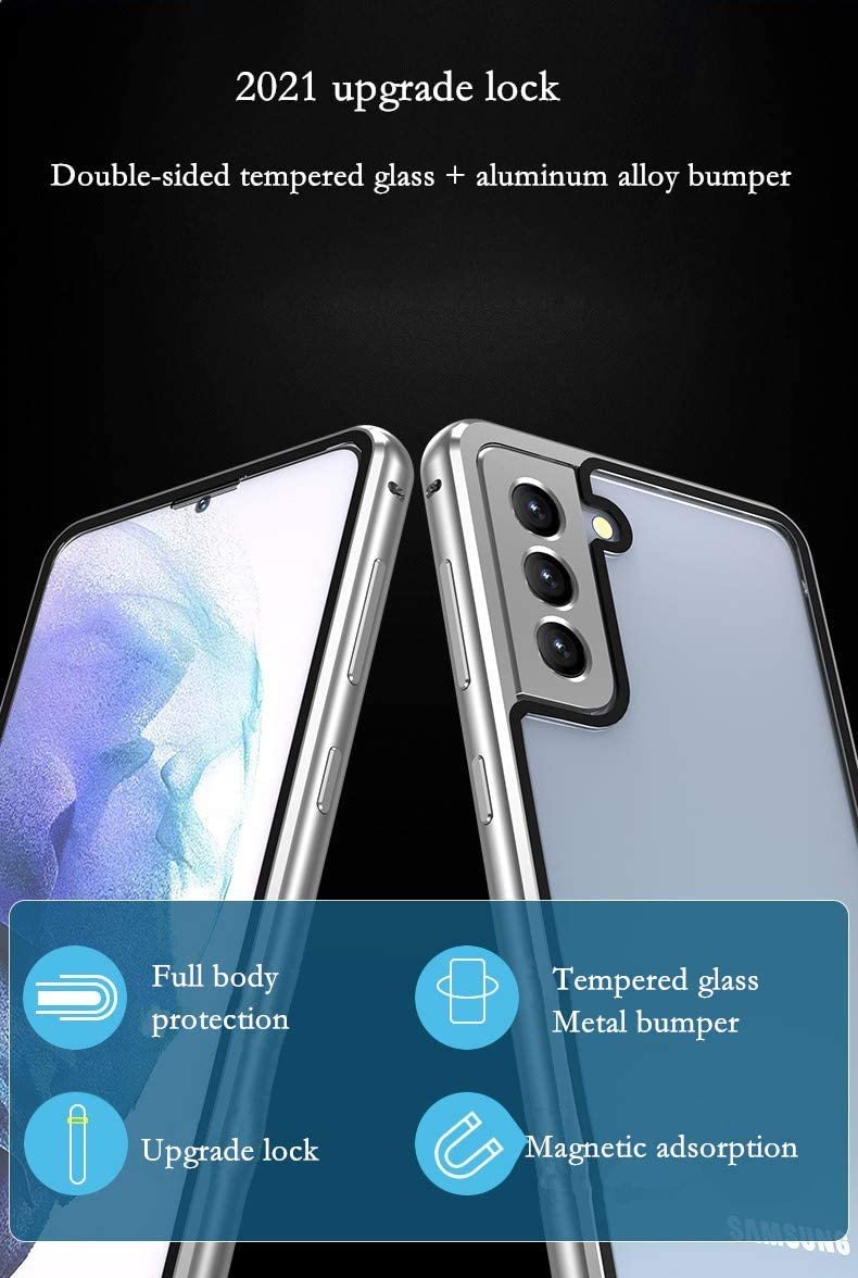【Inbyggt skärmskydd】 Inbyggt skärmskydd i härdat glas , Använd vårt Samsung S21 dubbelsidigt glasskydd utan extra köp av ett skärmskydd. HD-glaset på framsidan och baksidan kan markera originalet telefonens skönhet.