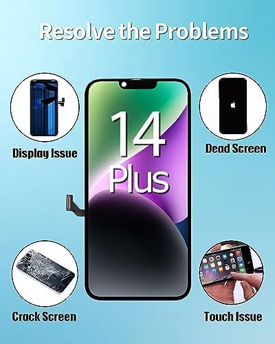 Kompatibilitet: Endast kompatibel med iPhone 14 Plus skärmbyte (modell A2886, A2632, A2885), 6,7 tum. INTE för 14 Pro Max eller 14 Pro, vänligen bekräfta telefonmodellen innan du beställer