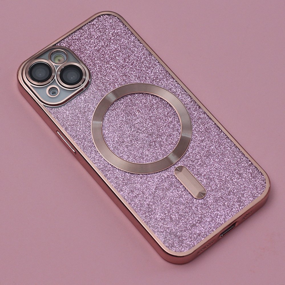 Glitter Chrome Mag-fodral för iPhone 15 plus rosa