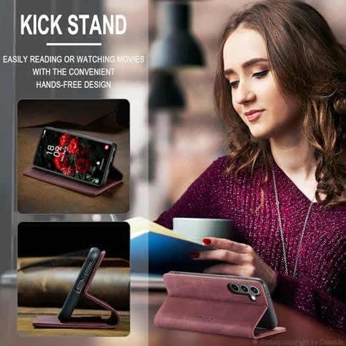Läderfodral caseme 0013 för Samsung S24 vinröd