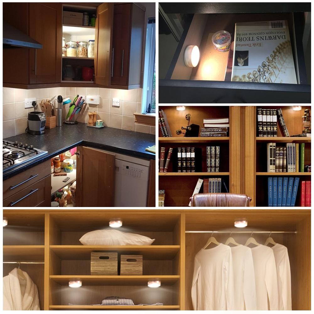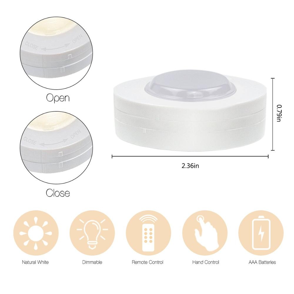 Behagligt ljus: Lys upp hemmet med dessa smarta spotlights som kan sättas upp i princip överallt. De lyser i ett naturligt vitt ljus eller färgglatt (RGB/16 färger) och styrs enkelt via den medföljande fjärrkontrollen.Mångsidig användning: Spotlightsen kan användas över köksbänken, i garderob/klädkammare, som vägglampor, i bokhyllan och på många fler ställen.Enkel installation: Varje spotlight är trådlös och drivs med 3 stycken AAA-batterier (ej inkluderat). Med hjälp av den starka 3M självhäftande tejpen sätts de enkelt upp på valfritt ställe.6-pack med 1 fjärrkontroller: Du får med hela 6 stycken spotlights. Perfekt för ett större rum eller garderob, eller om du vill sätta de på många olika ställen i hemmet. Det ingår fjärrkontroll.Specifikationer:Färg: VitStorlek: 6.2 x 6.2 x 2.6 cmMaterial: PC (plast)Paketet inkluderar:6 x spotlights1 x fjärrkontrollerNotera: 3 st AAA batterier/lampa behövs (ingår ej)