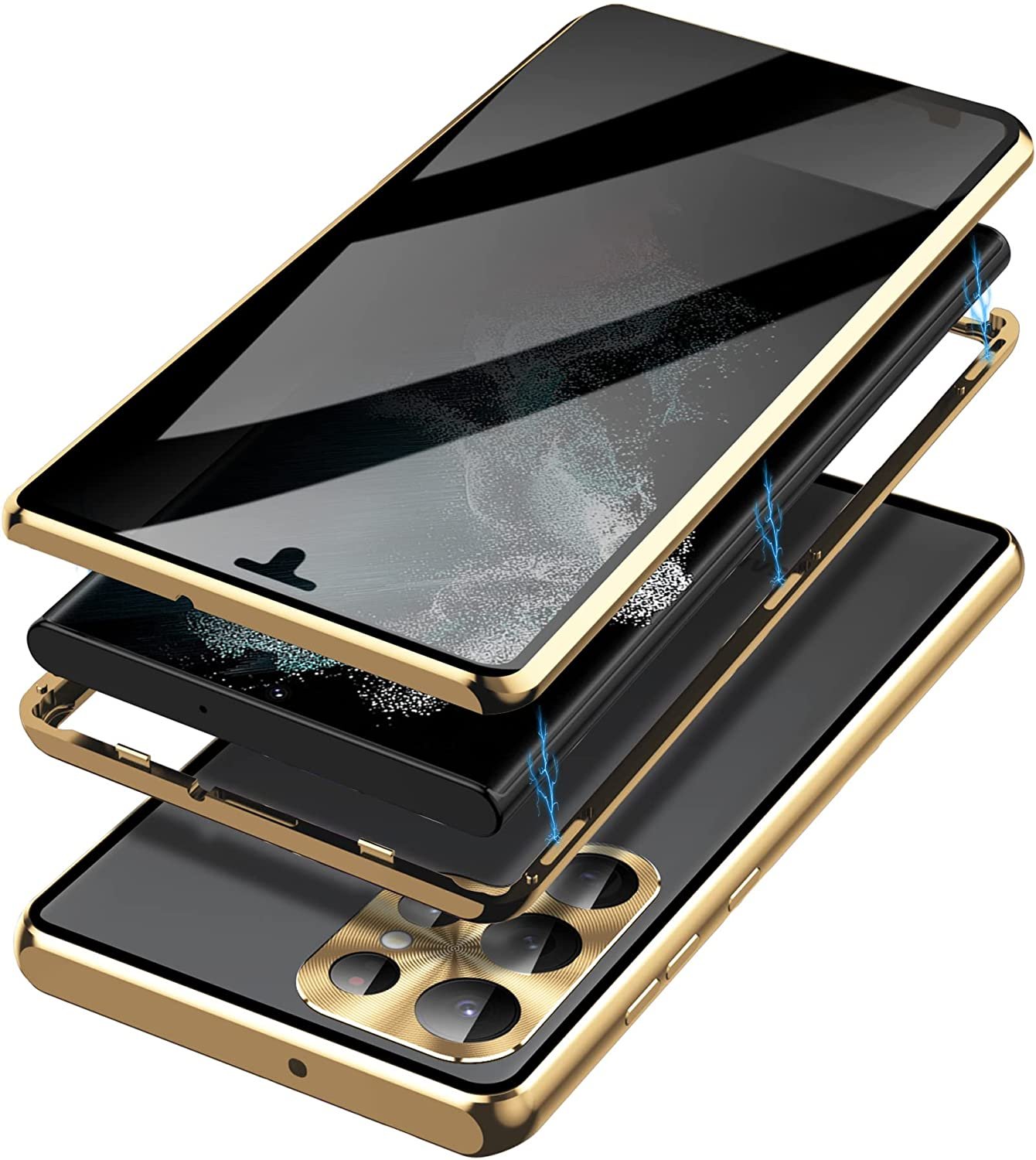 Det visuella området är 60° (vänster & höger 35°), vem som helst kan bara se mörka bilder på båda sidor. Det kan skydda din information, chattpost, betalningslösenord från att titta. Obs: Denna Galaxy S23  -sekretessskärm stöder INTE fingeravtrycksläsaren. ★ Supermagnetisk adsorption: Det finns totalt 16 magnetiska punkter omgivna i metallramen. Tack vare den starka magnetiska adsorptionstekniken kan de övre och nedre höljena på fodralet fästas tätt. Automatisk magnetisk attraktion på en sekund. Lätt att installera och ta bort.