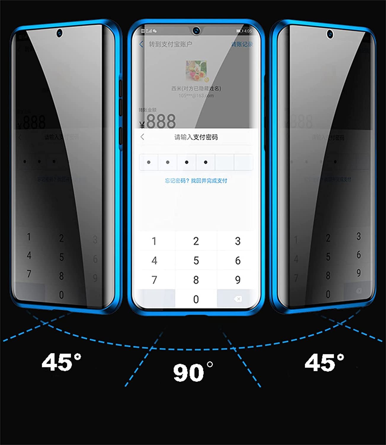 Det visuella området är 60° (vänster & höger 35°), vem som helst kan bara se mörka bilder på båda sidor. Det kan skydda din information, chattpost, betalningslösenord från att titta. Obs: Denna Galaxy S23-sekretessskärm stöder INTE fingeravtrycksläsaren. ★ Supermagnetisk adsorption: Det finns totalt 16 magnetiska punkter omgivna i metallramen. Tack vare den starka magnetiska adsorptionstekniken kan de övre och nedre höljena på fodralet fästas tätt. Automatisk magnetisk attraktion på en sekund. Lätt att installera och ta bort.
