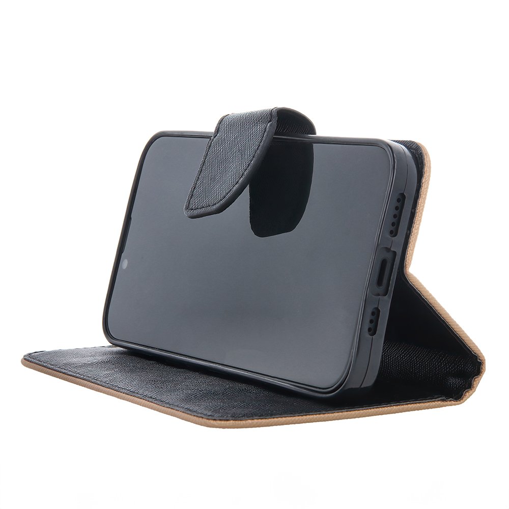 The back of the case is foldable, allowing the phone to be positioned horizontally for comfortable viewing of movies, photos, or for video calls. The magnetic closure additionally secures the phone against accidental opening or falling out. The case features precise cutouts for the camera, ports, and buttons, ensuring complete comfort while using the device.