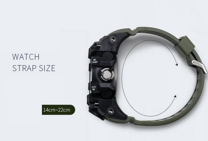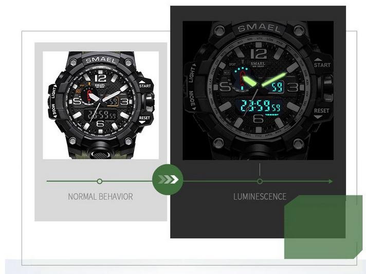Mäns Klocka: Appellerar män, speciellt för dem som gillar att göra sport. Stötmotstånd, stoppklocka, militär 24H-tidsläge och LED-bakljus gör den perfekt för all sport och daglig användning.